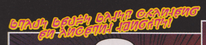 The font that’s used has been in DC’s comics for several years – among other places, it’s turned up in Blue Beetle as the language of the scarab; it was used in Pandora: Trinity of Sin when Pandora (remember her?) cast a spell; and even as far back as Final Crisis: Requiem when it was used as the Martian language.