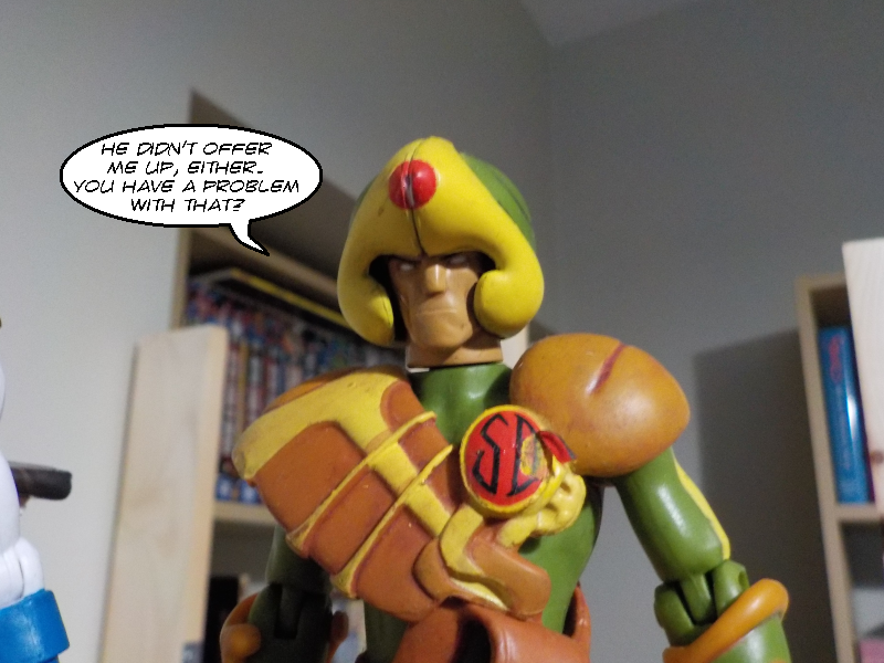There I was yesterday, catching up on the blogs I follow, when I saw this post over at Dale’s blog. Long time readers might recognise Dale as being the most prolific commenter here, and also supplied the script for Boy Wonders Part 2. He has a good thing going with skits using action figures but the latest one I linked to . . . * sigh * . . . he’s using a Lego character, and I had to respond . . .