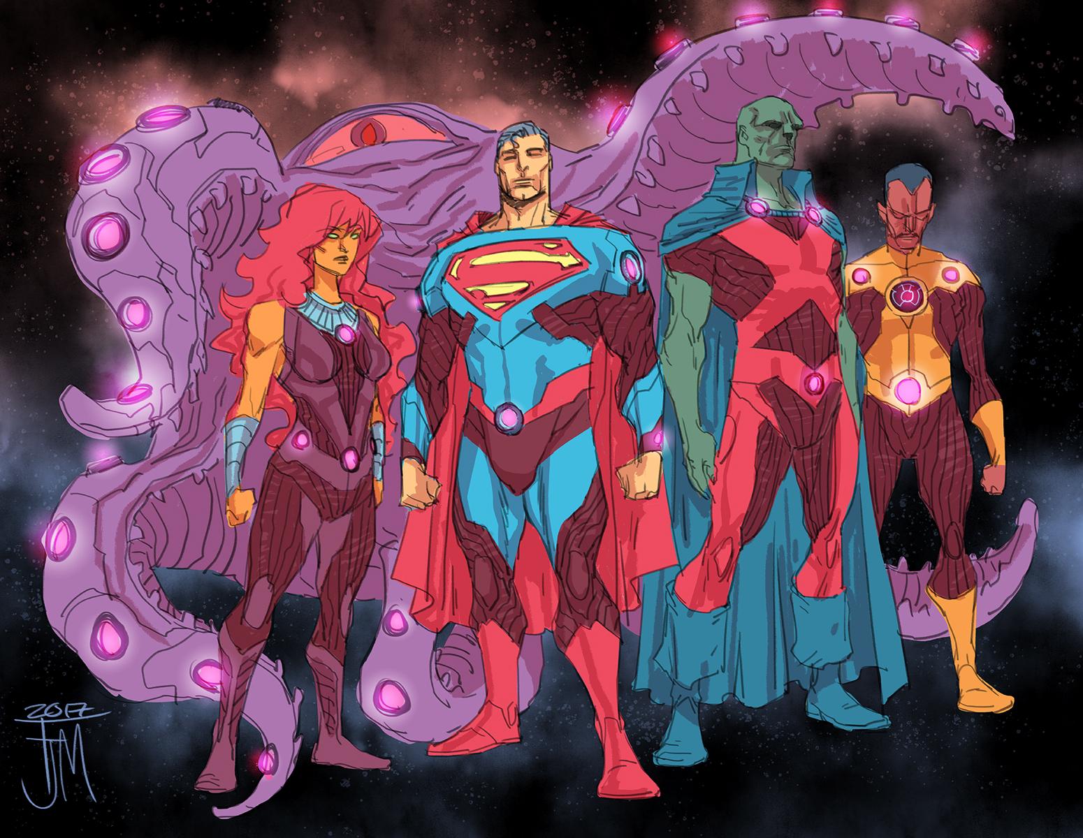I’m calling this team JLAliens (which is completely a call back to the Justice Leagues mini event from 2001) and while it’s nice to see Martian Manhunter back with the League . . . Starro? Really?!