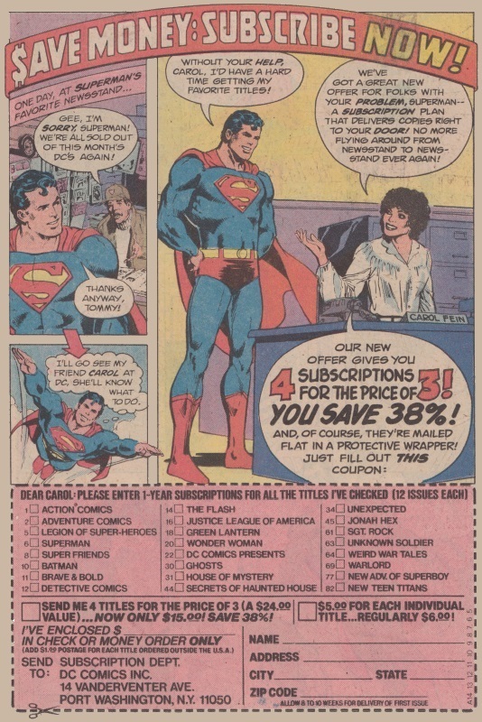 He just heads over to see Carol Fein at DC, who tells him to subscribe to save himself the disappointment of his “favorite newsstand” selling out.