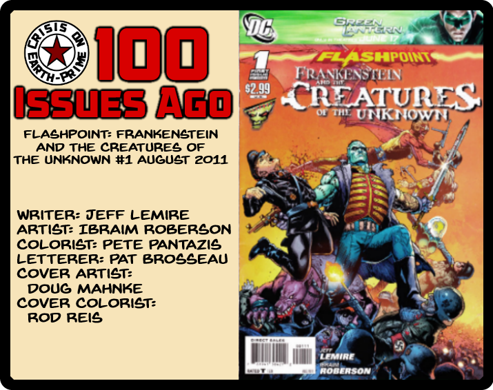 And lo, the FLASHPOINT spin-offs have landed! I picked up 34 issues from DC this month, of which 20 were FLASHPOINT related miniseries or one-offs. This one – FRANKENSTEIN AND THE CREATURES OF THE UNKNOWN – was one of my favourites as it took Grant Morrison’s version of Frankenstein from his SEVEN SOLDIERS miniseries and had fun with it.