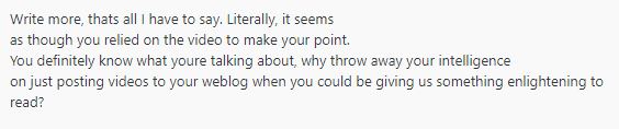 This was attempting to post on a Mash-Up . . . so a post which had nothing to do with a video. It’s almost like these bots don’t pay attention.