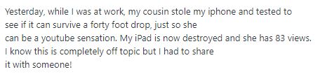 You’re right, completely off topic but it did make me smile – but was it your iPhone or your iPad?
