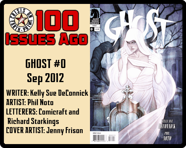Way back in the early 90s, for better or worse, Dark Horse Comics tried to launch their own superhero universe with new characters all crossing over with each other to establish that sense of community and continuity. GHOST was the only title of that push that I picked up so, in 2012, when it was relaunched by Kelly Sue DeConnick (about whom I’d heard good things) I thought it was worth a go. Thinking back on it, it wasn’t bad; it didn’t just retread old ground but tried to do something a little fresh while still holding on to enough of the original conceit that old fans like me felt as though it were being treated with respect. This issue was the first of a mini-series bringing the character back and, as I say, it did an okay job of it.