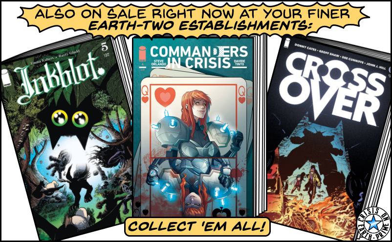 Monsters and robots falling from the sky! Mysterious (and familiar??) superheroes joining our intrepid gang on their journey to event ground zero! CROSSOVER continues with the series’ most explosive and shocking issue to date! Don’t miss this one, folks. If you do, it just might drive you…mad.