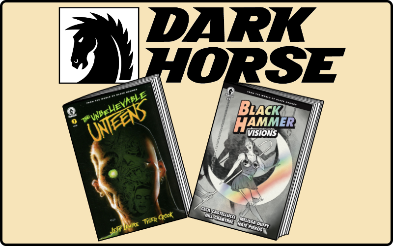 As it has been for the last few months (years, maybe?) Dark Horse is still just the BLACK HAMMER titles for me. UNBELIEVABLE UNTEENS is Lemire’s take on the X-Men in the Hammerverse and is a great start with a comic book writer/artist being contacted by one of her characters who reveals that she used to be one of the Unteens. VISIONS continues a look at other characters and this one-shot is splendidly done.