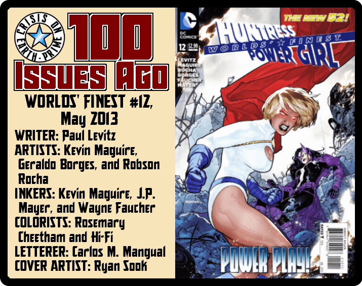 It’s an action packed issue of WORLDS’ FINEST this month that takes the highlight spot – hardly surprising as it’s the issue where Power Girl finally shrugs off the hideous New 52 costume and returns to the classic look, even including the boob window. Well, technically, it’s not this issue – this same month, Power Girl made an appearance in SUPERGIRL #19 and it’s there, not even in the pages of her own (shared) title, that she returns to the classic look. The events of that issue and the new costume aren’t even mentioned in this issue.