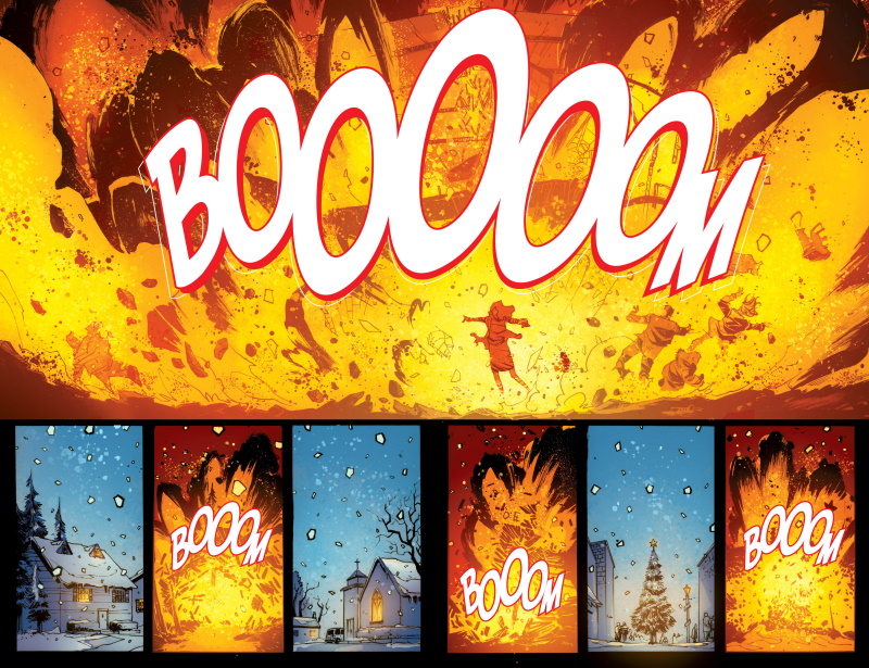 Alice and her mom are in the hospital by this point and as the explosions devastate the town, Alice wheels her mother out on her hospital bed, stopping (and very reluctantly) to rescue her previously injured father, the Nailbiter. Trouble is, The Butcher is there as well and manages to capture them all amidst the devastation.