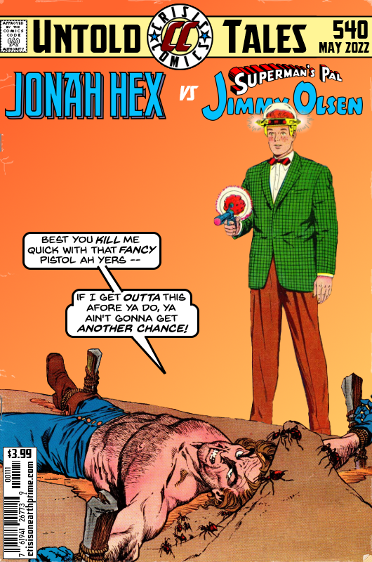 Untold Tales #540 Jonah Hex vs Jimmy Olsen I want to say this is an unlikely pairing . . . but something tells me 60s Jimmy could easily have time-travelled and hung out with Jonah Hex. Share this: Click to share on Bluesky (Opens in new window) Bluesky Click to share on Reddit (Opens in new window) Reddit Share on Tumblr Click to email a link to a friend (Opens in new window) Email Click to share on Threads (Opens in new window) Threads Click to share on WhatsApp (Opens in new window) WhatsApp Click to share on Mastodon (Opens in new window) Mastodon Like Loading... Related