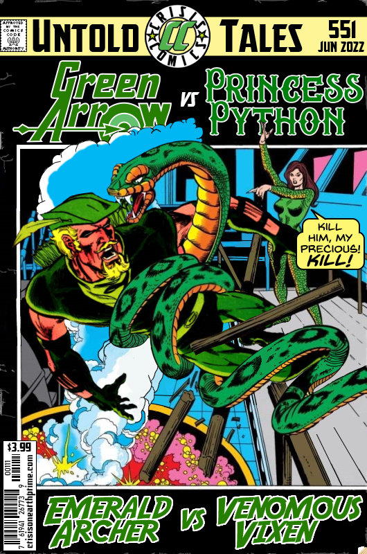 Untold Tales #551 Green Arrow vs Princess Python So how’s Ollie going to get out of this one? Big snake in his face, vat of acid below – it’s not a good day to be Green Arrow. Share this: Click to share on Bluesky (Opens in new window) Bluesky Click to share on Reddit (Opens in new window) Reddit Share on Tumblr Click to email a link to a friend (Opens in new window) Email Click to share on Threads (Opens in new window) Threads Click to share on WhatsApp (Opens in new window) WhatsApp Click to share on Mastodon (Opens in new window) Mastodon Like Loading... Related