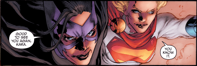Amidst the chaotic storytelling that the last few issues of EARTH 2: WORLD’S END became, it was nice to see the two besties, Huntress and Power Girl, meet up again.
