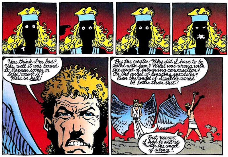 In the pages of THE SANDMAN, Neil Gaiman placed two angels in charge of Hell, Remiel and Duma. In the pages of THE DEMON they went from being angelic beings of grace and peace to . . . well, see above.