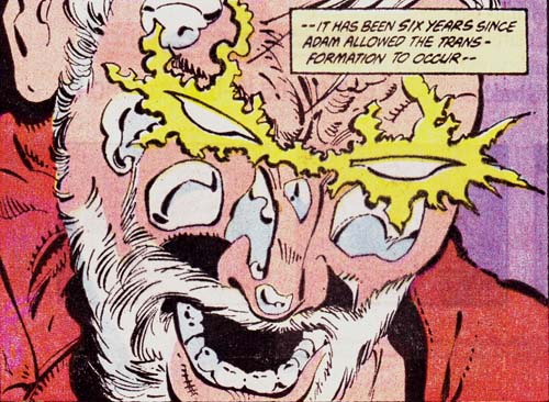 Page 11 – Panel 1: Unable to take any more, Adam begins the transformation into Captain Atom.