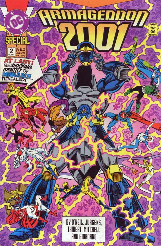 It’s no secret now, twenty years and more after it was first published, that Monarch’s true identity was supposed to be that of Captain Atom. Monarch’s identity was the MacGuffin of the series and even the ending of the JUSTICE LEAGUE EUROPE tie-in annual, the last before the climax in issue #2, seemed to point towards Captain Atom.