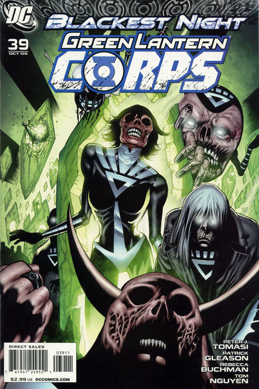 As seen in BLACKEST NIGHT #7, the Green Lantern Corps – along with just about every other shade of Lantern – have arrived above Earth and are attempting to stop the millions of Black Lanterns from reaching the planet’s surface. Instructed by the Guardians to work together, they reluctantly put aside their differences and concentrate on attacking the Black Lanterns.