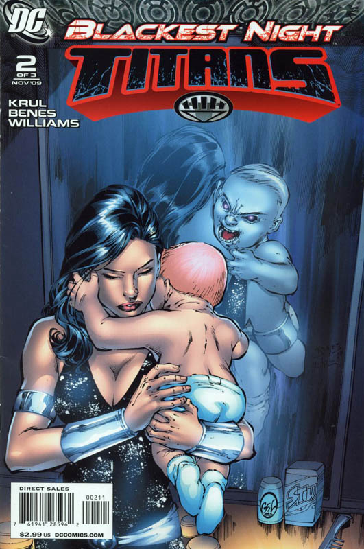Inspecting the ghostly baby carriage, Donna finds a rattle with the Black Lantern symbol. Turning at the sound of a voice, she sees her undead ex-husband Terry and their son, Robert. Thinking she must be dreaming, she embraces her child who bites into her neck.