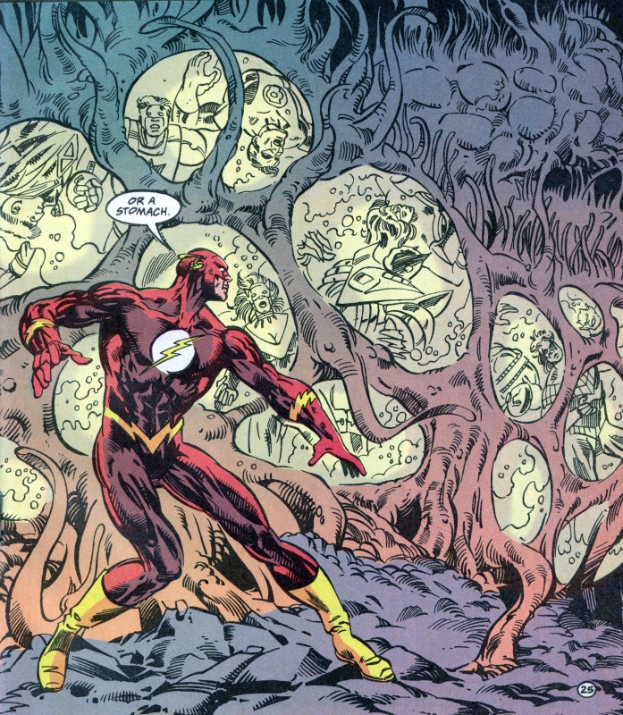 Page 39 – Panel 2: Flash tries to warn them about the tentacles and the paralysing effect . . .