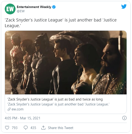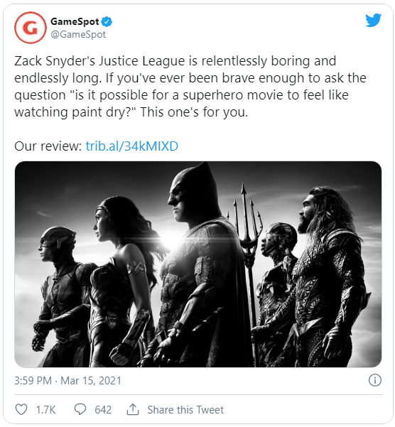 But, as The Beat points out, the overflowing praise “seems to come from fans who have been campaigning for #ReleaseTheSnyderCut for the last few years” so they’re bound to be happy – they got what they wanted.