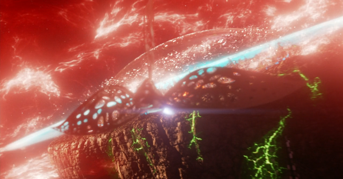 On Argo City, Superman and the others receive a warning from Supergirl as the red skies arrive and Alura – Supergirl’s mother – takes them to an escape pod which only has room for Kal and Lois’s son. As the pod launches, the wave hits and Argo is destroyed.