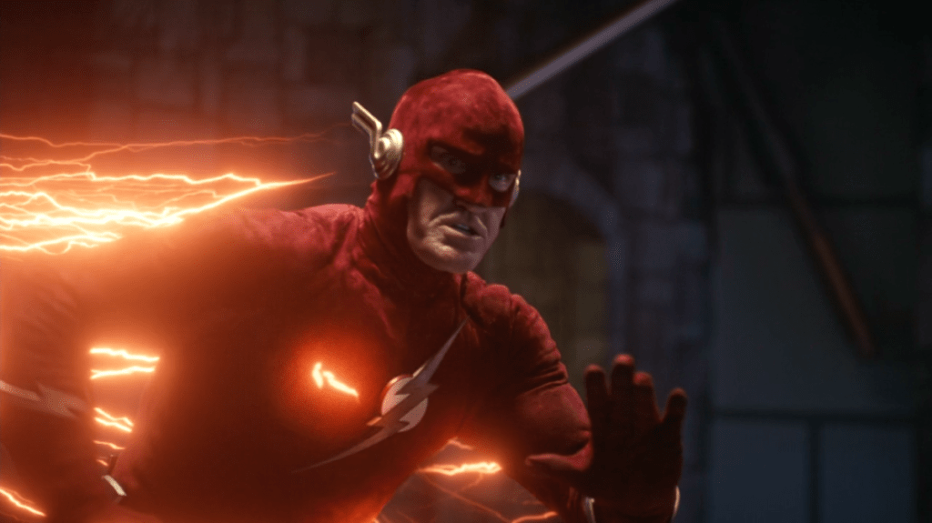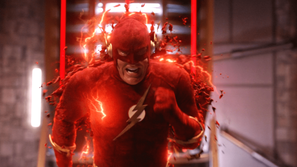 The Flash says goodbye to Cisco and Frost, but Flash-90 temporarily steals his speed, taking his place, saying that the Monitor said a Flash had to die in Crisis, but not which one. Cisco vibes Flash-90 back on to the treadmill and as the others escape, Flash-90 runs, reversing the treadmill, vanishing into nothing as the cannon explodes and the anti-matter wave dissipates before it hits Earth-1.