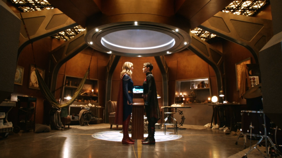 Supergirl and Batwoman argue about using the Book of Destiny to restore the Earths, with Batwoman talking her out of using it.