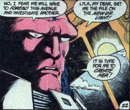 Page 22 – Panel 11: But if you can’t have emotion, let’s try something else. He hasn’t even created the new Dr. Light but there’s already a file on her!