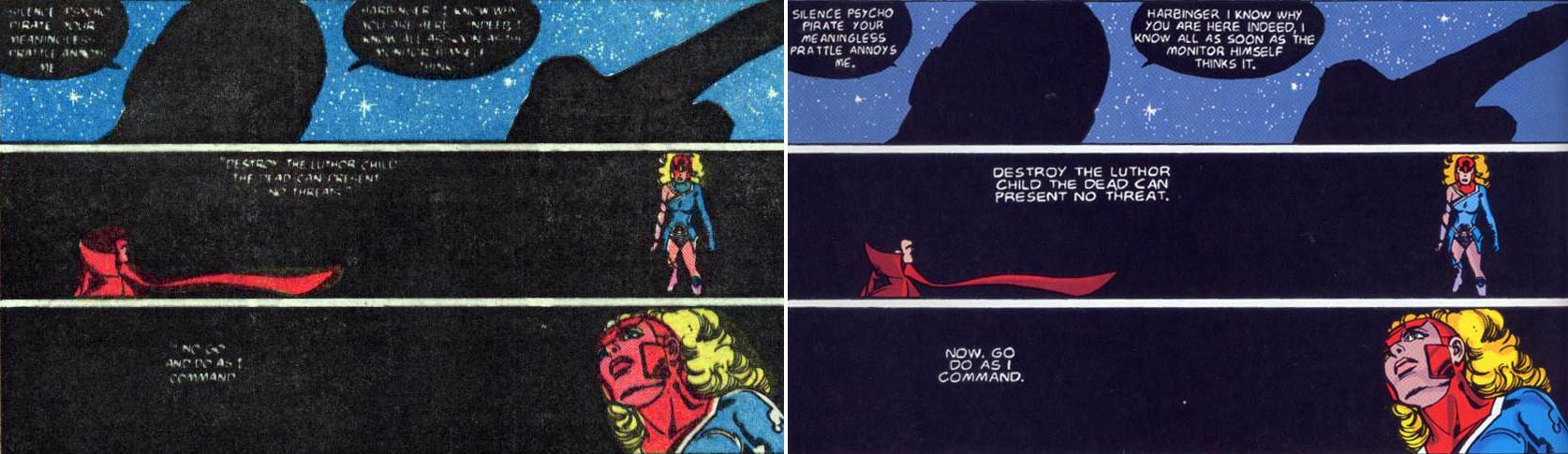 It might have worked better had the Monitor not clearly reacted to Harbinger’s words in Panel 4 but that’s comics for you.