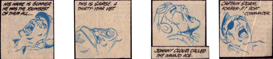 Page 14 – Panel 3: These are the Losers. From left to right are Johnny Cloud; Sarge; Gunner; and Captain Storm.