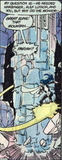 Page 31 – Panel 4: Dr. Light was about to ask why the Monitor created her. We will find the answer to that later in the series. In the meantime, Pariah is crushed.