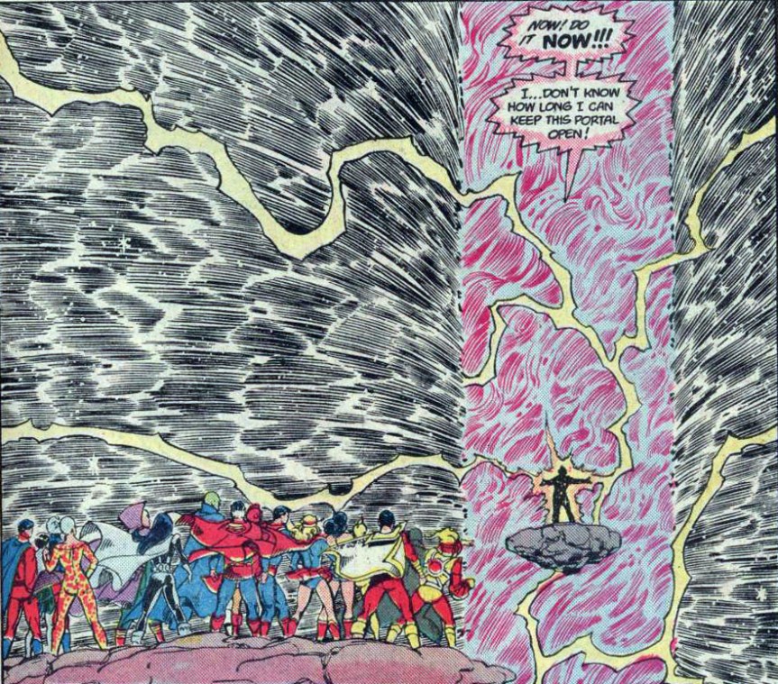 Page 20 – Panel 1: The heroes leave the Netherverse and head to the anti-matter universe.