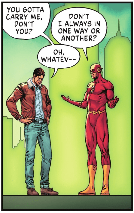 Page 2 – Panel 1: . . . and it’s Barry Allen’s Flash, who was rescued from his own world as seen in THE FLASH #785. The Brave and Bold line harks back to the anthology series of the same name, as well as the mini-series focusing on the friendship between Barry and Hal.