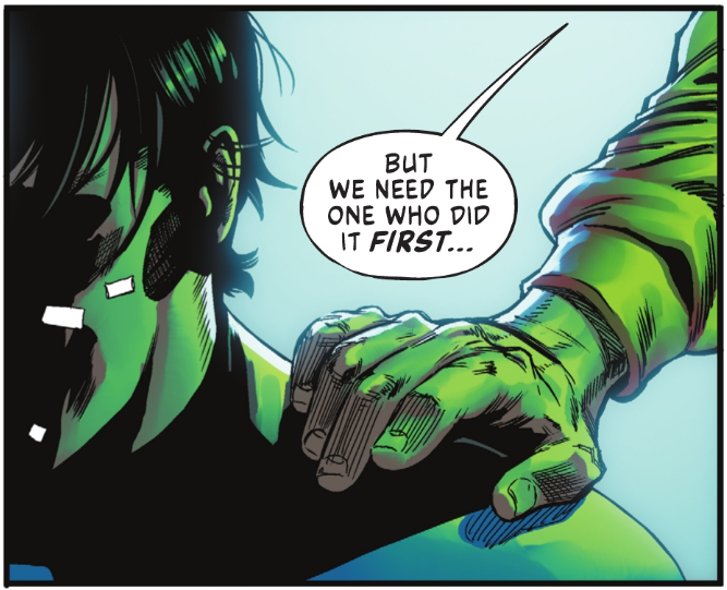 Page 8 – Panel 2: The reason Beast Boy isn’t waking up is, according to Nightwing, because he believes Deathstroke killed him.