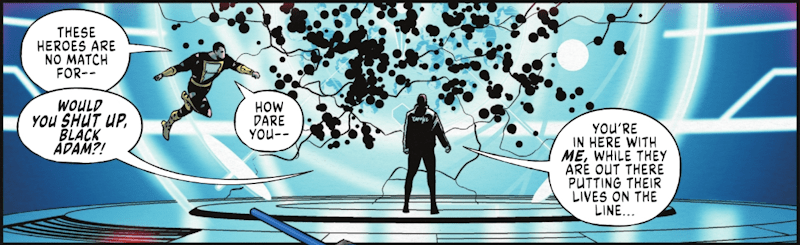 Page 12 – Panel 2: Black Adam and Mr Terrific, with someone finally calling out Adam’s negativity.
