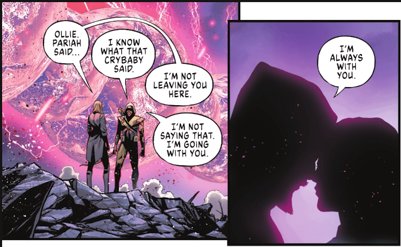 Page 10 – Panel 3: Black Canary worries that Green Arrow thinks something’s going to happen to him.