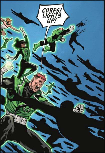 Page 1 – Panels 5 and 6: And the Lanterns engage them.