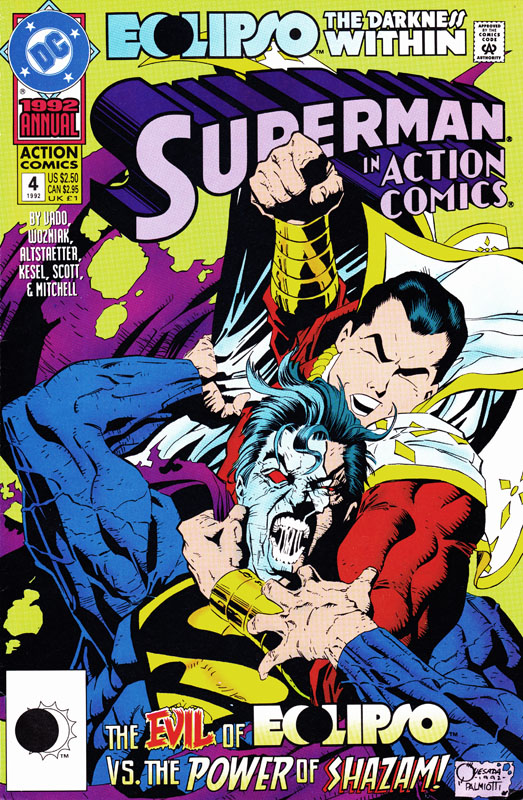 Back in Metropolis, the boy who had the black diamond in the Mall is derided and beaten by his parents, triggering another Eclipso episode. Luckily, Superman is on hand armed with the tracking device loaned to him by Bruce and, after battling the monster, Superman uses Bruce’s solar gun to extinguish Eclipso.