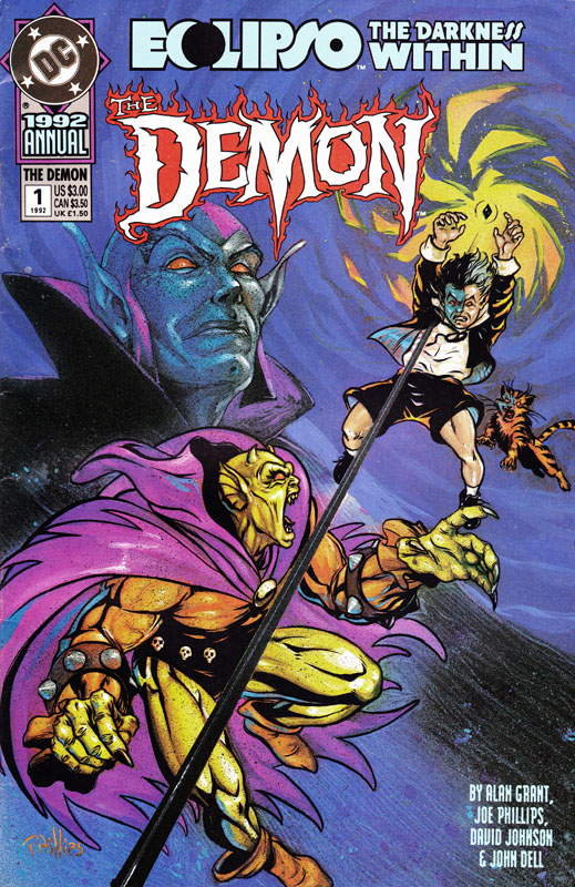Jason Blood, along with Harry the talking pillow (if that description means nothing to you, I recommend you track down and read THE DEMON series!) have been invited to San Francisco by Xavier Nihilo who, unknown to them, is a magician who has promised to free Jason of Etrigan. Once in the city, they encounter a magical beast, forcing Jason to change into Etrigan to defeat it. Conincidentally, Klarion the Witch Boy is nearby and discovers that Jason is in town. With the creature defeated, Jason and Harry head to Nihilo’s mansion, Klarion secretly following.