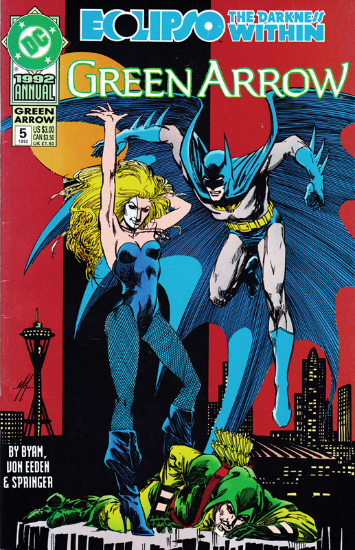 Green Arrow has called in help in the form of Batman and the pair go after the eclipsed after coming up with a plan. Arrow lures the eclipsed across the city, working throughout the night, eventually getting Canary alone underground. When all seems lost, Batman tears open the covering of the cellar they are in, exposing Canary to the daylight, though Gan and Wren remain lost and still eclipsed. Due to his injuries, Green Arrow opts to sit out the coming confrontation with Eclipso, leaving Black Canary to take him on with Batman and the rest.
