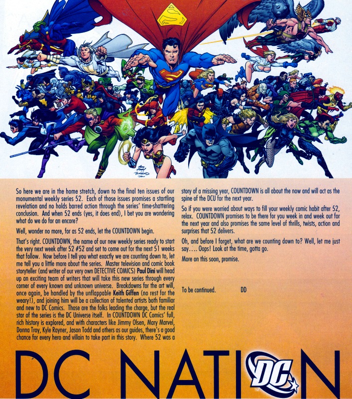 As I found so many ads for COUNTDOWN and its spin offs, I decided to split them out from the FINAL CRISIS House Ads and give them their own page here.