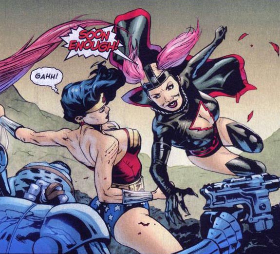 Page 26 – Panel 2: Wonder Woman breaks Mary’s arm.