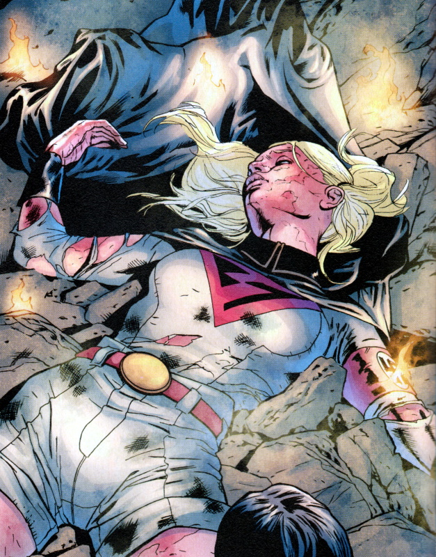 Page 17 – Panel 1: Supergirl preparing to leave after having received her letter of draft re: Article X. In a world of the internet, e-mail, mobile phones, not to mention telepathy, for some reason a printed letter is deemed the best and quickest way to get all the heroes of the DCU together? I admit it’s a little more visual as a device than reading an e-mail but come on . . .
