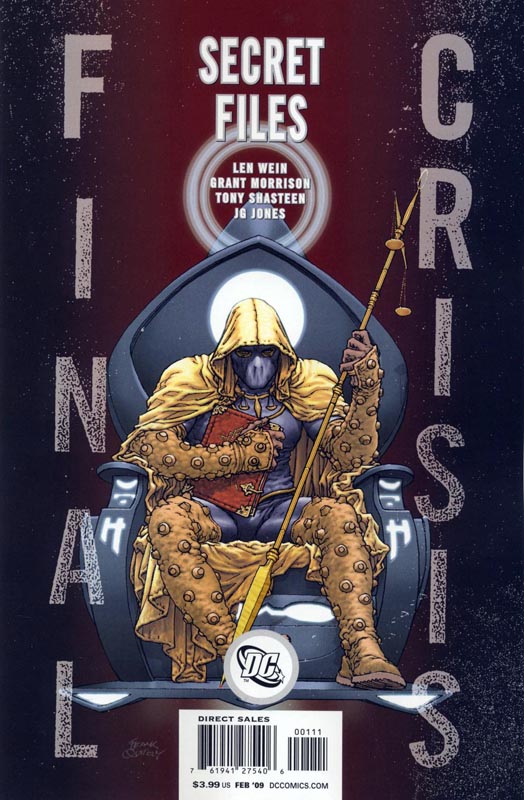 Libra, herald of Darkseid, narrates his own origin story. He tells of how, aged eight and still called Justin Ballantine, his mother’s death was caused by the carelessness of a drunken pharmacist and how her death drove his father to drink and then to beat him. Becoming obsessed with stars led him to buy a telescope and install it on his roof, the same roof that his father – drunk and angry once more – toppled from, leaving Justin an orphan.