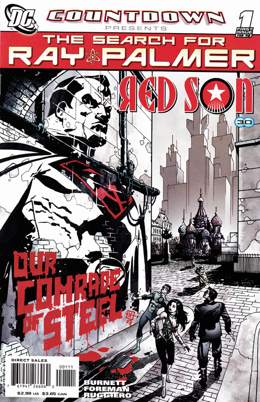 Sneaking into a hospital, they surprise this world’s Batman injecting Ray Palmer with something. They rescue both of them from the approaching Soviet Superman, though Donna is captured.