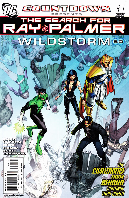 Searching for Ray Palmer, the Challengers arrive on Earth-50, home to the Wildstorm heroes. They split up to look for Palmer but Green Lantern is pulled into the Bleed by Monarch as he had been once before. Monarch offers him the chance to stand beside him in the coming conflict. Lantern manages to stall making a decision and returns to Earth-50 where he and the other Challengers meet various heroes.