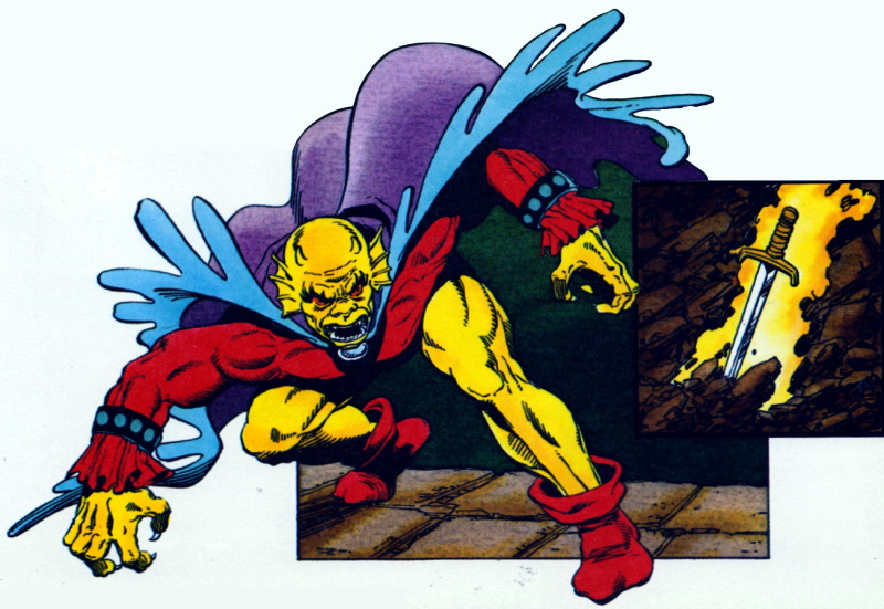 Page 21 – Panels 5 and 6: Etrigan the Demon and, presumably, Excalibur.