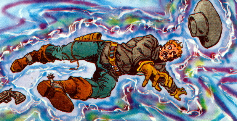 Pages 28 and 29 – Panel 10: Jonah Hex (shown above) is transported through time to a post-apocalyptic world.