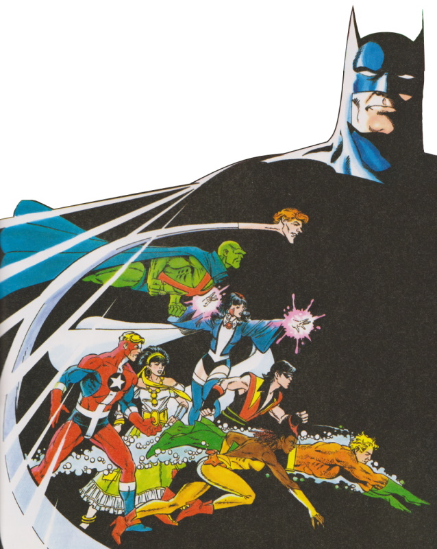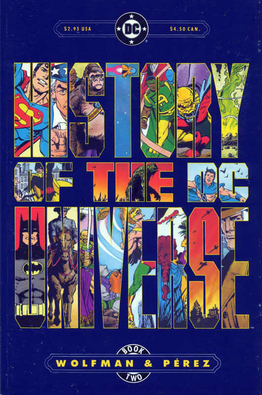 Cover: Each of the letters making up the title contain a character or scene. With the exception of Superman, Swamp Thing, and Batman, the characters are the same as Book One.