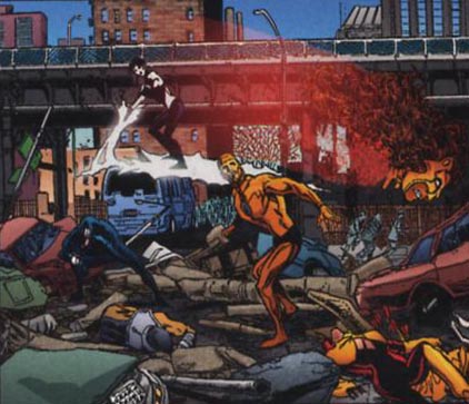 Pages 212 and 213 (Issue 7 – Pages 2 and 3): These aren’t new pages, but the fight between the heroes and villains in the streets of Metropolis has been fully coloured.
