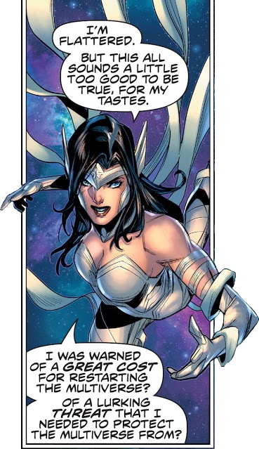 The price for the restoration of all this was that Wonder Woman was to ascend in order to protect the new reality from a lurking threat . . .