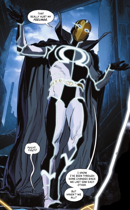 Page 24 – Panel 1: . . . The Psycho Pirate who had a makeover courtesy of Darkseid at the end of INFINITE FRONTIER SECRET FILES.